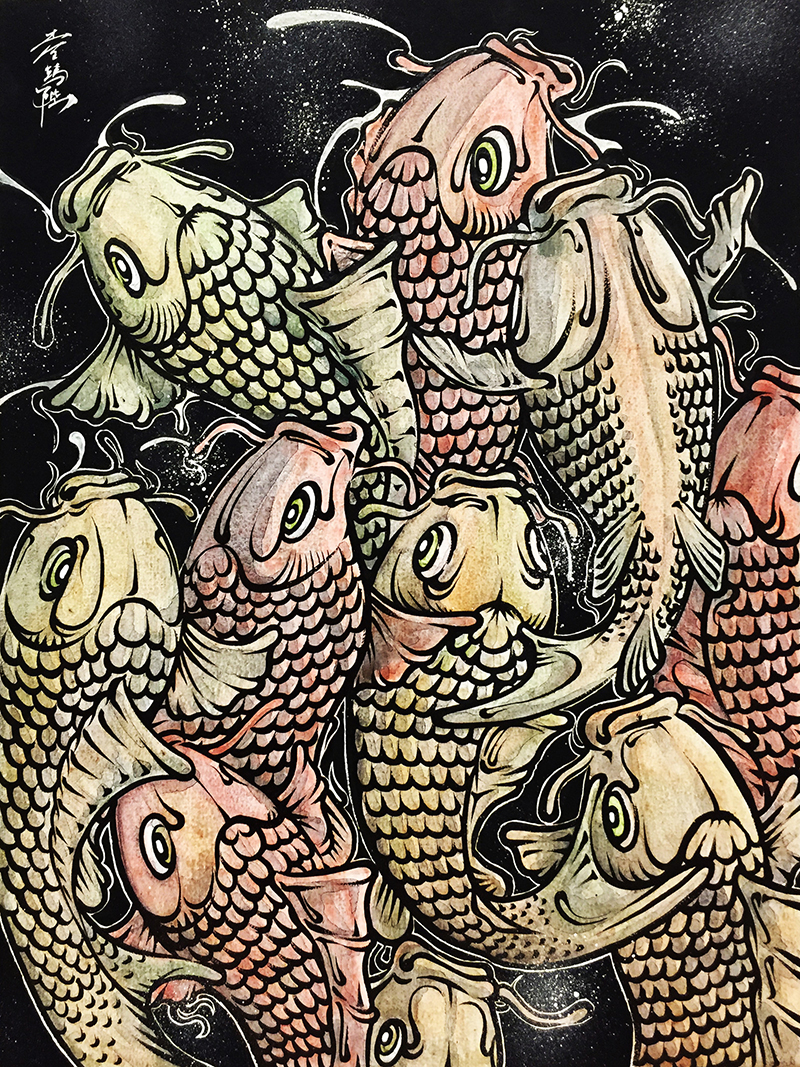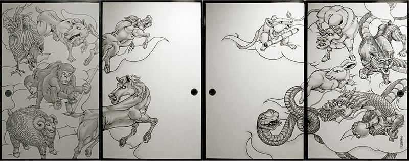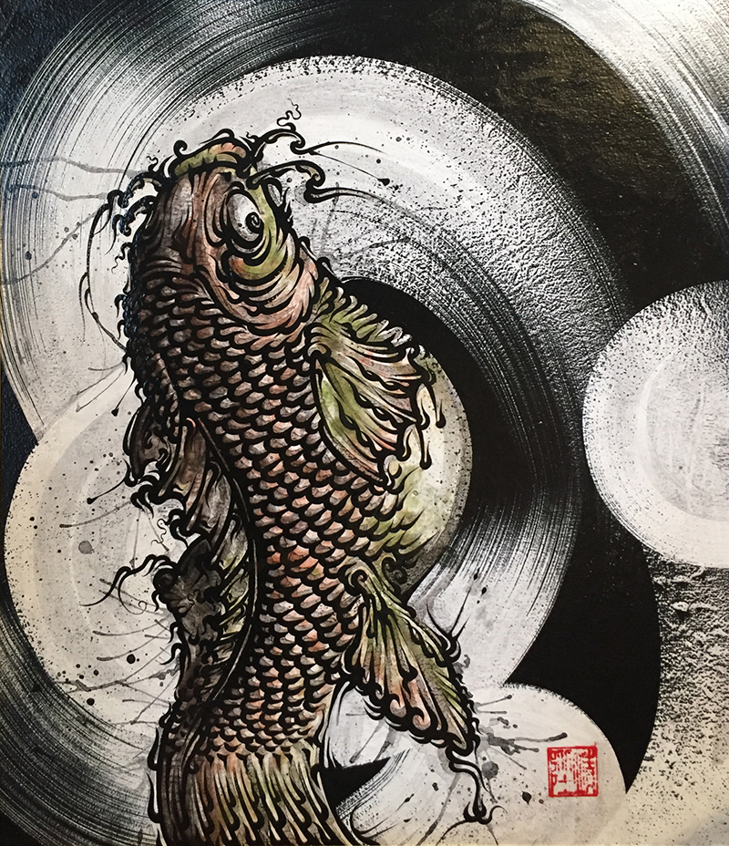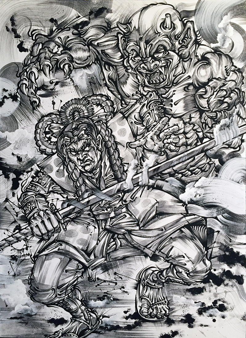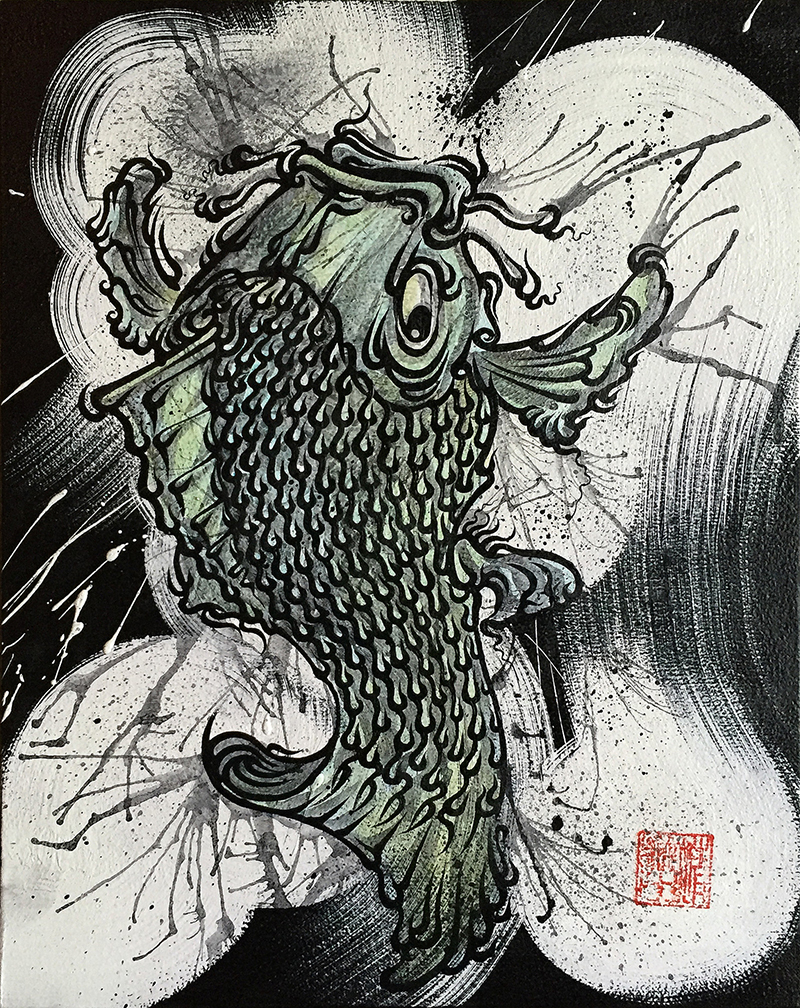 その時描きたい作品や、お客様からのご要望で書いた作品など、変化を楽しみながらいろいろなことにチャレンジしています。そんな木全靖陛の世界観を描いたオリジナルアートの作品です。